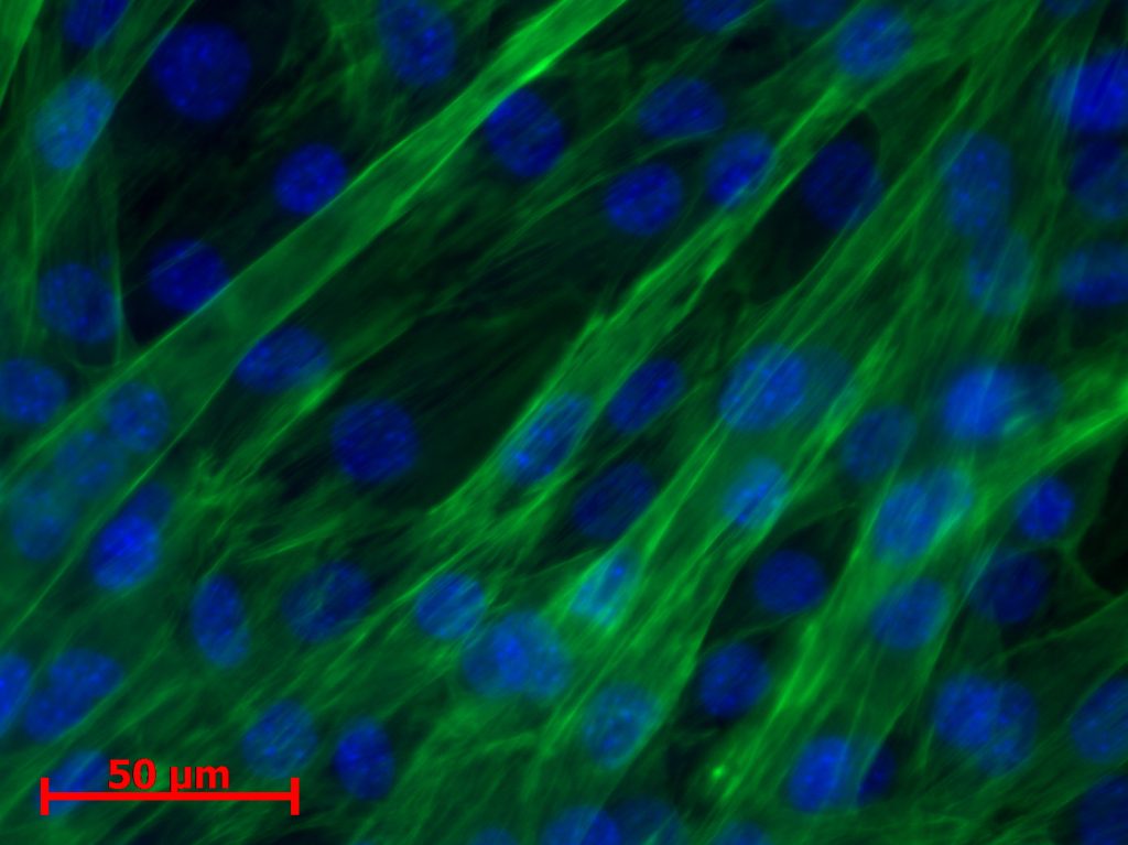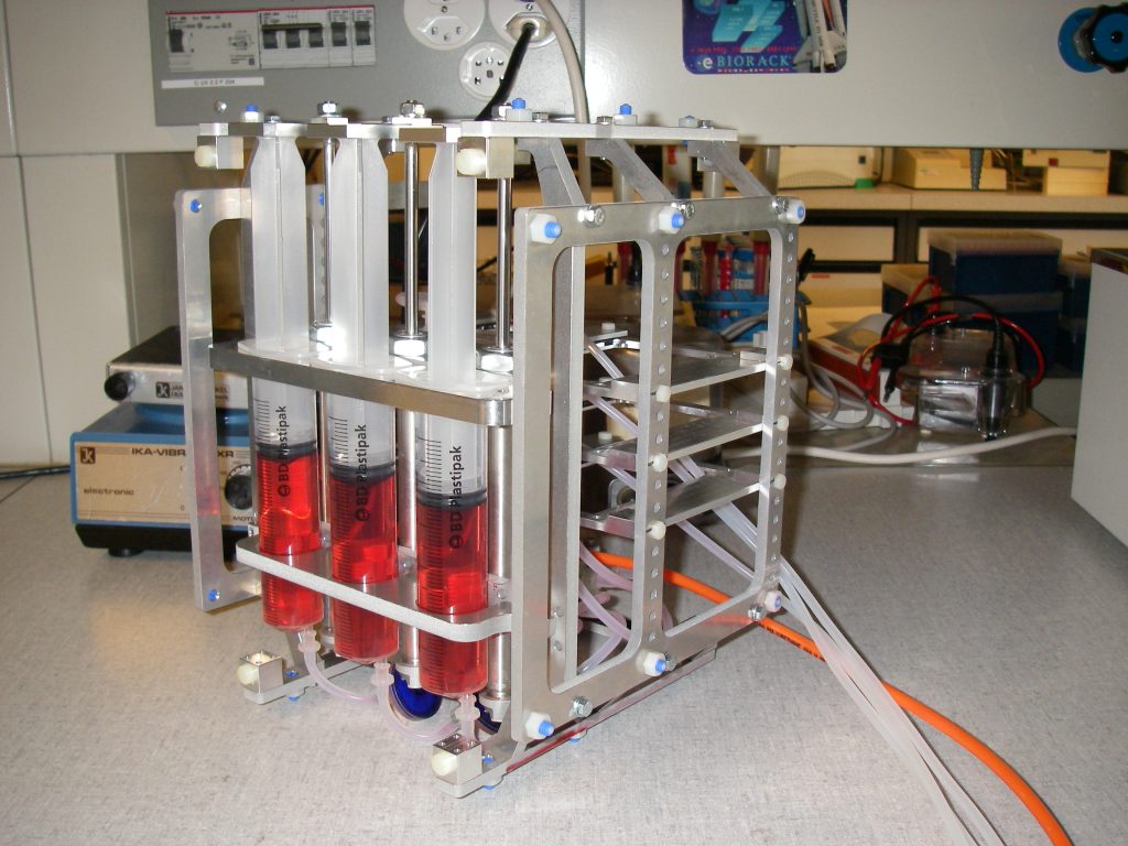 Myoblast exposed to perfusion for one day showed no change in morphology or cell alignment. In comparison to a non-perfused control, proliferation was enhanced through the improved nutrition situation. Myoblasts differentiating under simulated microgravity showed no enhanced or impeded differentiation. Proliferation was reduced in all three experiments and myotube width was unaffected.