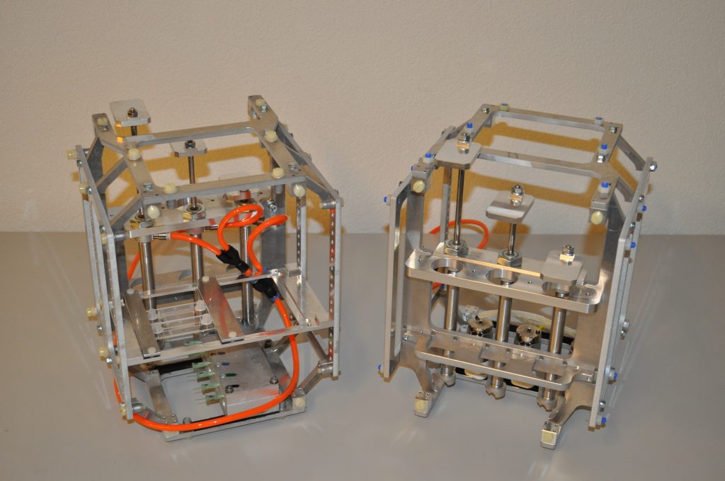 Muscle atrophy is of great medical concern, not only for astronauts in space but also for immobilized patients or elderly people on earth. Random Positioning Machines (RPM) are ground based devices frequently used to expose cells to simulated microgravity. The RPM consists of two gimbal mounted frames which rotate constantly to average the earth gravity vector over time to zero. Many studies on myoblasts have been carried out to study muscle development but only a few data are available concerning myoblast differentiation under simulated microgravity. The goal of this project was to improve the means of cell cultivation on the RPM and to study myoblast differentiation under simulated microgravity.